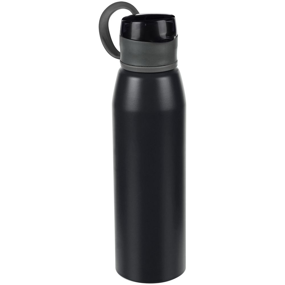 Легкая бутылка для спорта с откидной крышкой и силиконовой петлей для удобной транспортировки.