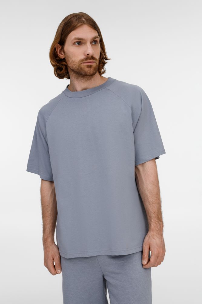 Футболка унисекс свободного кроя с рукавами реглан.P- Воротник из основного полотна тон в тон