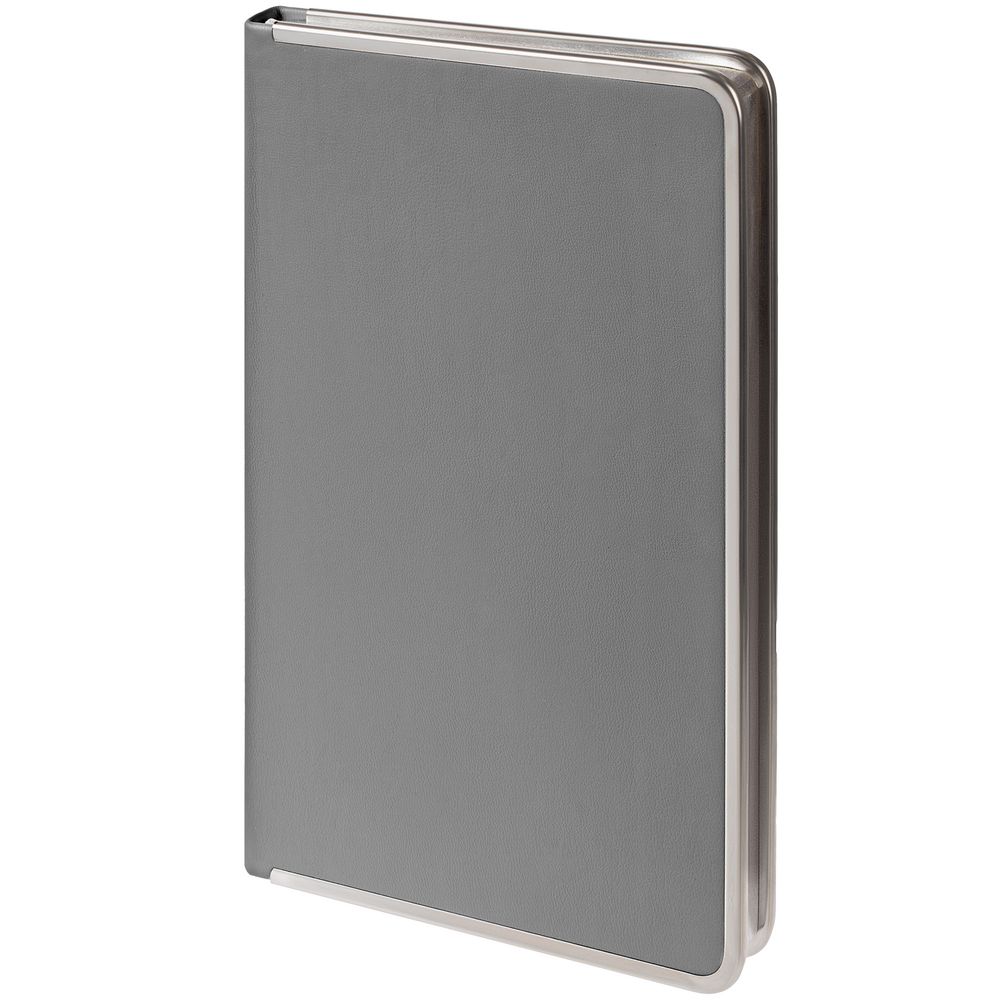 Изящный ежедневник с зауженным блоком и стильными деталями металлической окантовкой на обложке и металлизированным обрезом.