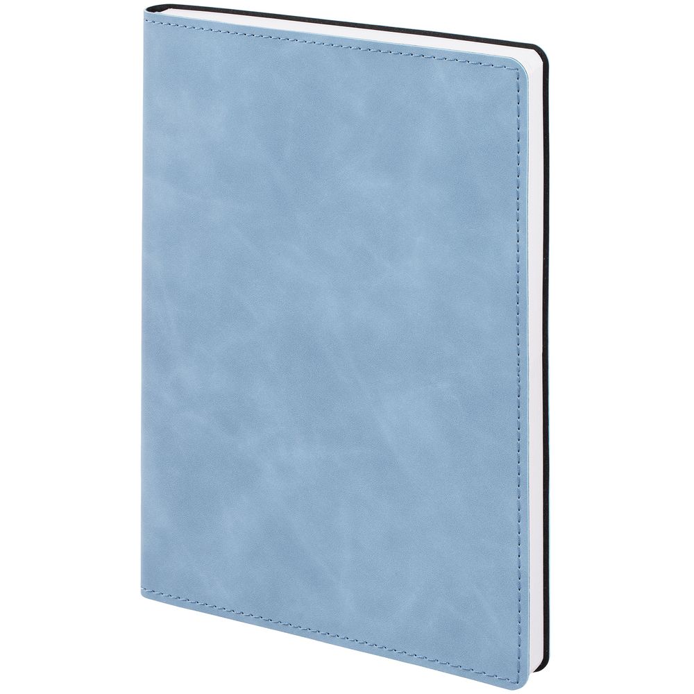 Ежедневник в клетку, с гибкой обложкой, выполнен из материала Nubuck Touch, голубой JJ, дополнен ляссе светло-голубого цвета.