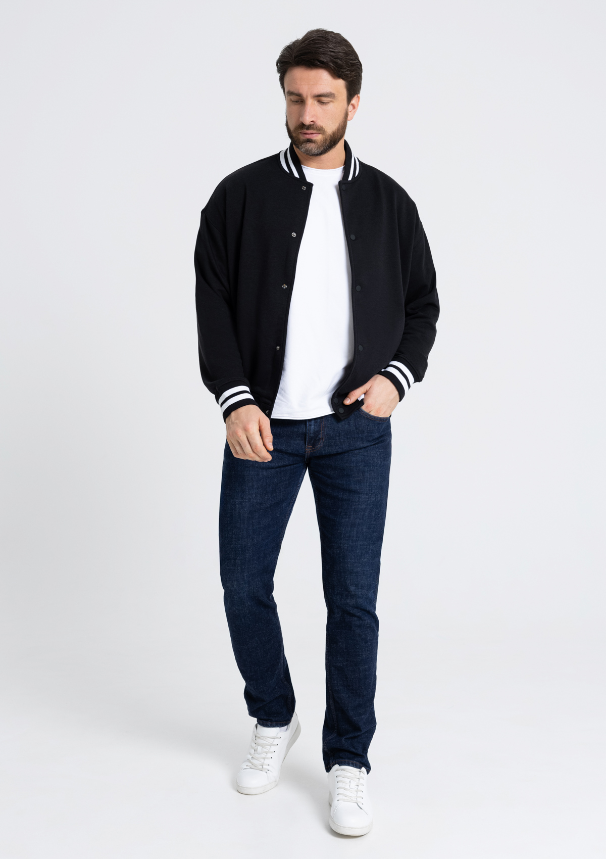 Бомбер унисекс STAN футер без начеса с контрастом 340, 71 (Чёрный, 50/L)