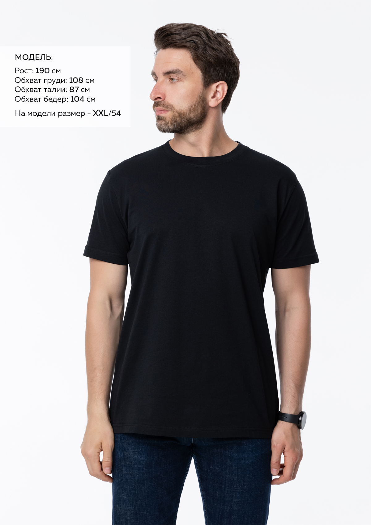 Размер мужской футболки: XXL/54. Параметры модели: рост 190 см.; обхват груди 108 см.; обхват талии 87 см.; обхватPбедерP104Pсм.Характеристики: