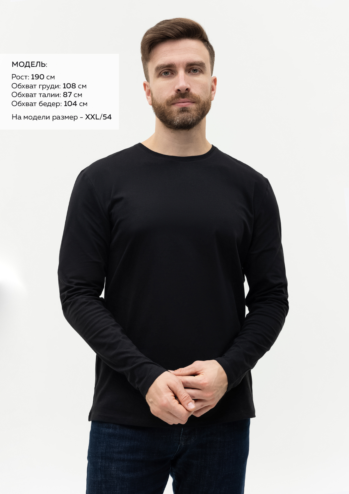Тонкая футболка с длинным рукавом, стильная и практичная, станет идеальным фоном как для яркого креатива, так и для деликатного дизайна. Какие бы цели вы не поставили, будь то повышение узнаваемости бренда, привлечение внимания к социально значимому проекту или поддержка любимой команды модель станет надежным помощником в их достижении.<br /> <br /> Универсальная футболка прямого силуэта с округлым воротом и длинным втачным рукавом. Плечевые швы и шов горловины усилены настрочной бейкой из основного полотна.<br /> <br /> Изделие выполнено из мягкого и плотного материала кулирная гладь &#40;92&#37; хлопок, 8&#37; эластан&#41;. Ткань хорошо пропускает воздух и впитывает влагу. Благодаря добавлению эластана изделие отлично тянется, практически не мнется и не скатывается.<br /> <br /> Размер на модели: XXL/54. Параметры модели: рост 190 см.; обхват груди 108 см.; обхват талии 87 см.; обхват бедер 104 см.