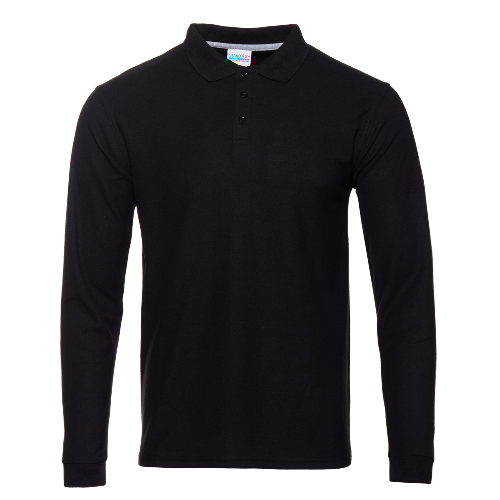 Рубашка поло унисекс STAN длинный рукав хлопок/полиэстер 185, 104S (Чёрный, 48/M)
