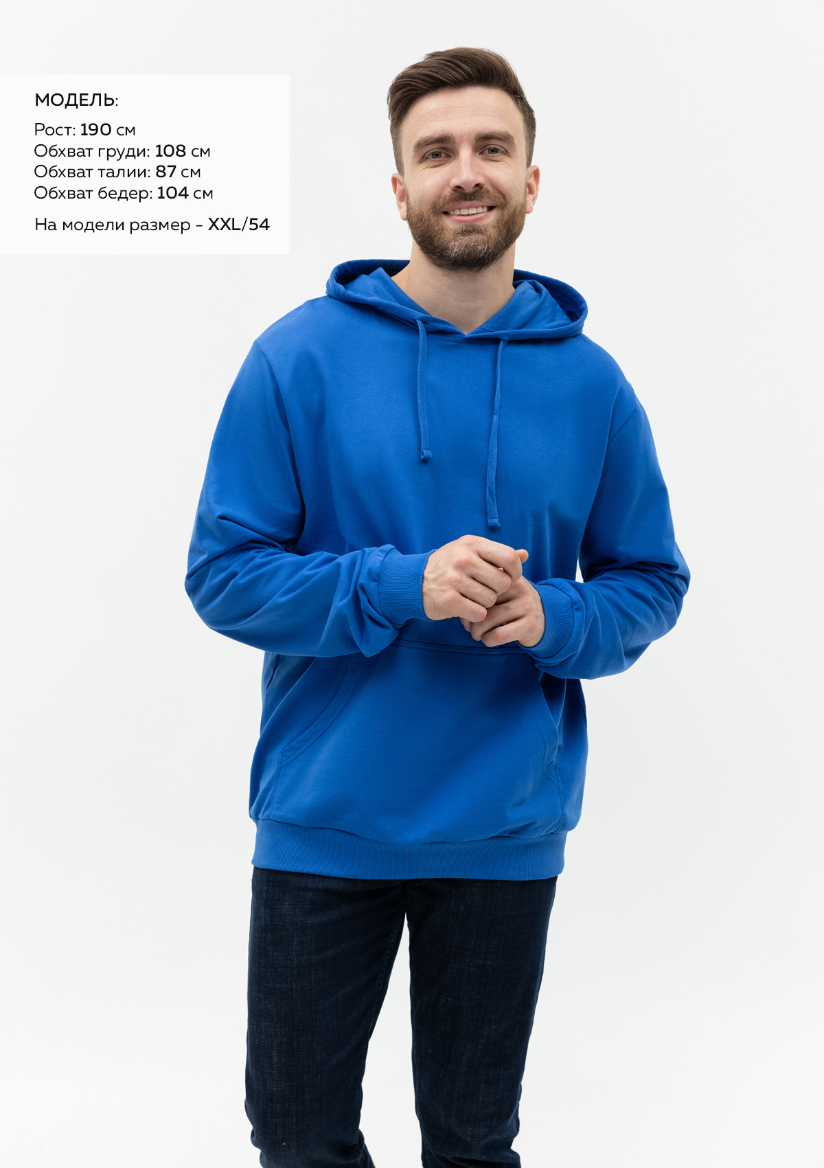 Толстовка станет полноценным участником любого мероприятия: объединит участников, поддержит командный дух и заберет приз зрительских симпатий. Благодаря классическому крою и вашему креативному дизайну будет радовать качеством и после завершения мероприятия. <br /> <br /> Толстовка прямого силуэта с капюшоном, втачным рукавом и карманом-кенгуру. Капюшон дополнен шнурком для регулирования прилегания, манжет и низ изделия оформлены широкой эластичной резинкой. Возможно два варианта исполнения: контрастные шнурок и бейка/шнурок и бейка в цвет толстовки.<br /> <br /> Толстовка без начеса выполнена из мягкого футера &#40;100&#37; хлопок&#41;, подклад кулирная гладь &#40;100&#37; хлопок&#41;. Оба материала устойчивы к механическому воздействию и вытяжению, практически не поддаются пилингу.<br /> <br /> Размер женского худи: XXS/42. Параметры модели: рост 173 см.; обхват груди 80 см.; обхват талии 58 см.; обхват бедер 89 см.<br /> <br /> Размер мужского худи: XL/52. Параметры модели: рост 190 см.; обхват груди 108 см.; обхват талии 87 см.; обхват бедер 104 см.