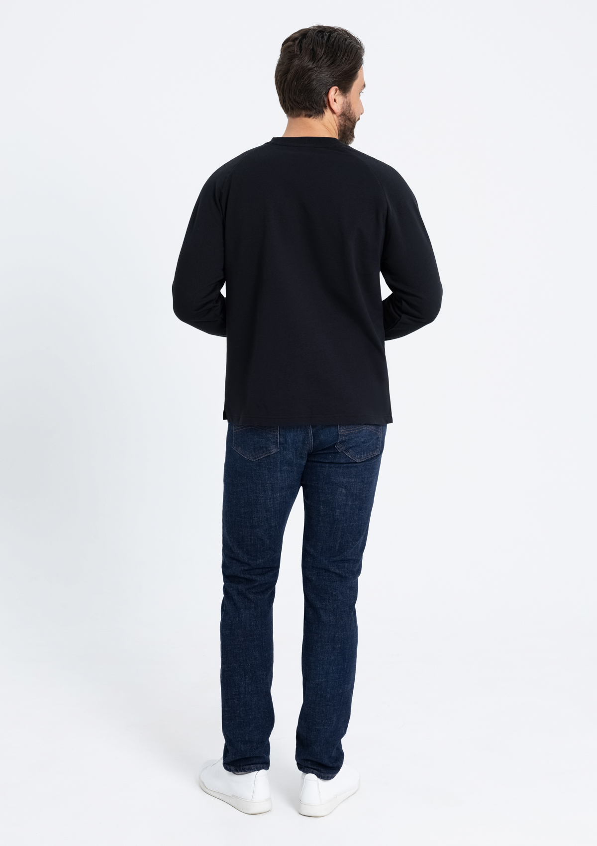Свободный силуэт, округлый вырез, рукав-реглан и декоративные элементы, отсылающие к классическому крою. Ворот и манжет выполнены широкой эластичной резинкой. <br />