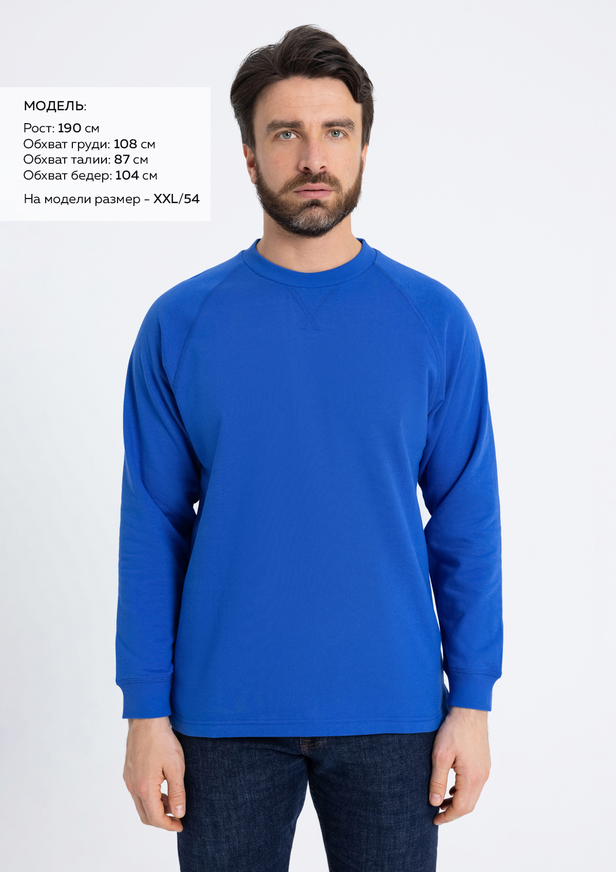 Размер мужского свитшота: XXL/54. Параметры модели: рост 190 см.; обхват груди 108 см.; обхват талии 87 см.; обхват бедер 104 см.Характеристики: