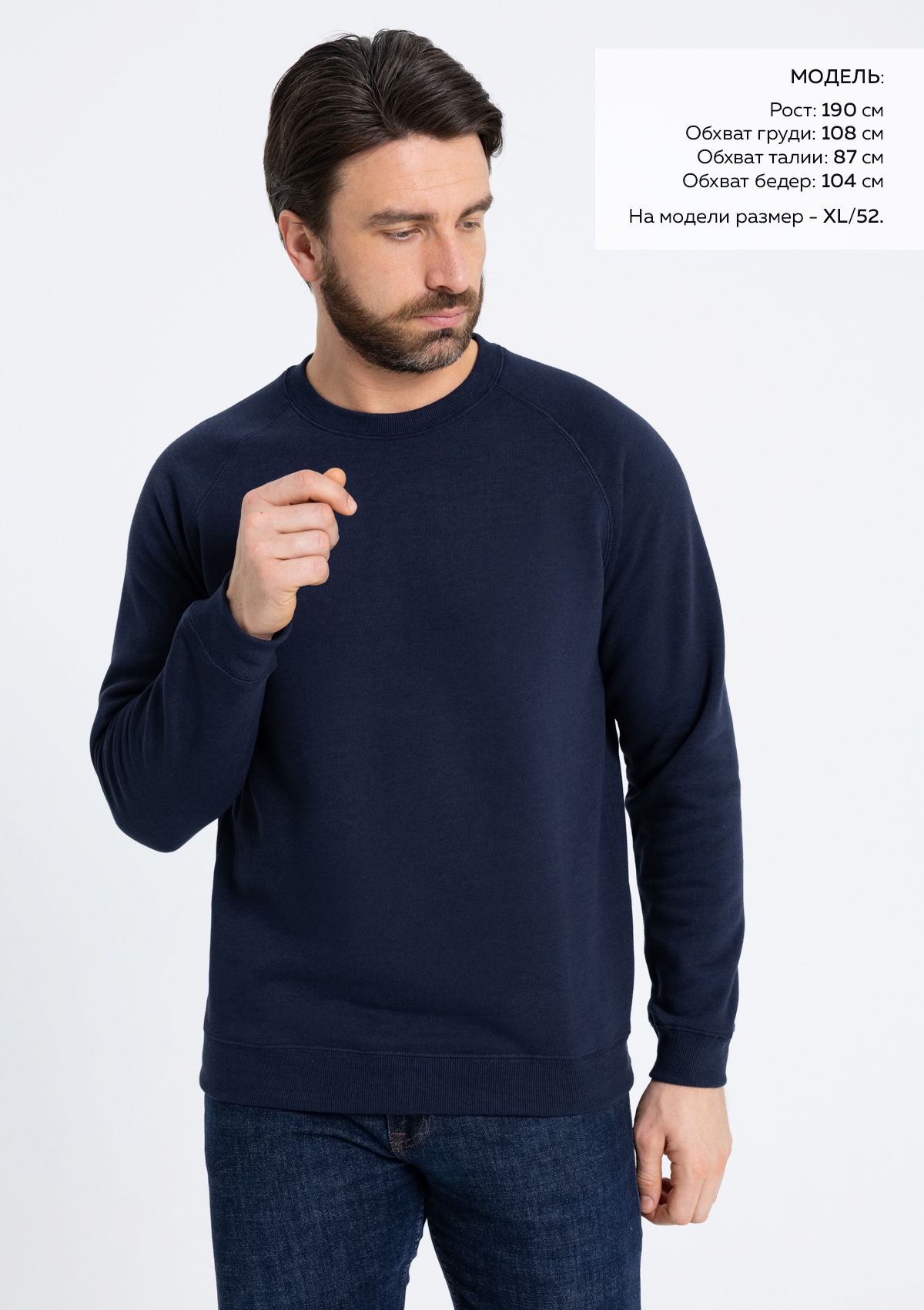 Размер мужской толстовки: XL/52. Параметры модели: рост 190 см.; обхват груди 108 см.; обхват талии 87 см.; обхват бедер 104 смХарактеристики: