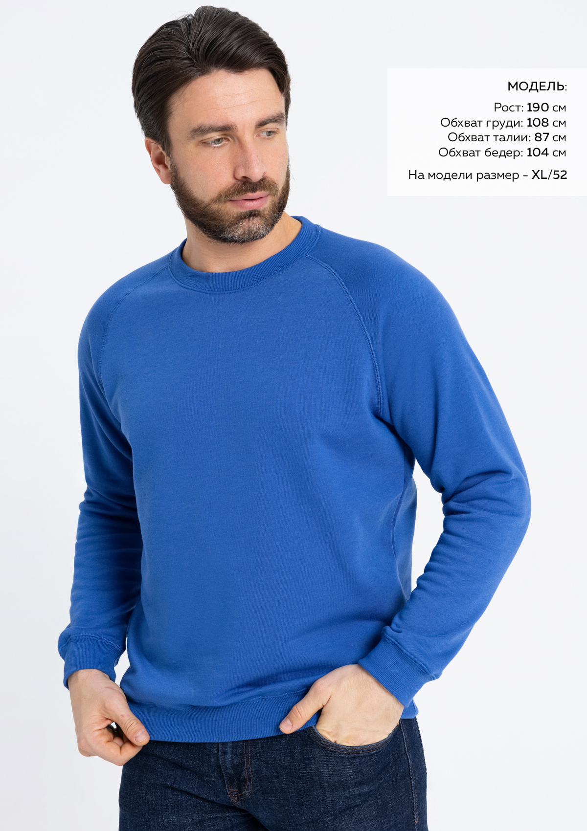 Размер мужской толстовки: XL/52. Параметры модели: рост 190 см.; обхват груди 108 см.; обхват талии 87 см.; обхват бедер 104 смХарактеристики: