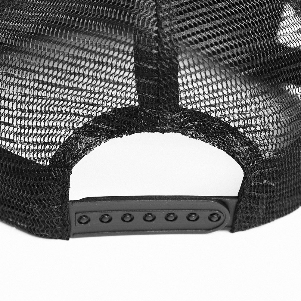 Бейсболка-пятиклинка с прямым жестким козырьком и пластиковой регулируемой застежкой, боковые клинья выполнены из жесткой сетки. <br />