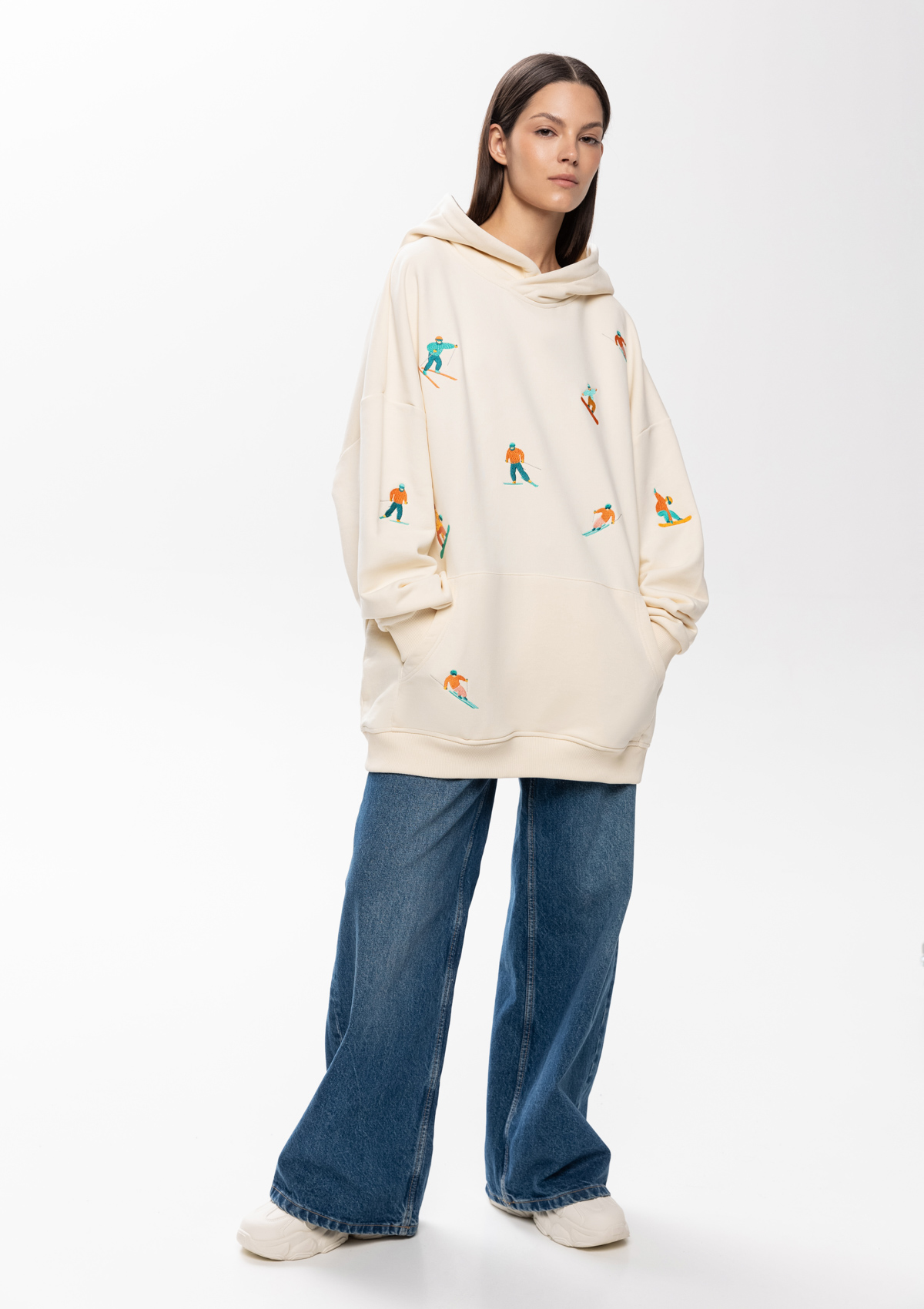 Уютная оверсайз толстовка идеальный способ выразить благодарность и проявить внимание к сотрудникам, участникам спортивной команды или членам союза студентов. Мягкий укутывающий силуэт, согревающие материалы и ваш яркий креатив гарантированно впечатлят своего получателя. <br /> <br /> Универсальная толстовка свободного силуэта с капюшоном комфортной глубины, спущенной линией плеча и глубоким карманом-кенгуру. Манжет и низ изделия оформлены широкой эластичной резинкой. <br /> <br /> Модель выполнена из мягкого и приятного к телу футера &#40;80&#37; хлопок и 20&#37; полиэстер&#41;. Плотный материал хорошо пропускает воздух и впитывает влагу. Благодаря добавлению синтетического волокна изделие обладает повышенной износостойкостью и эластичностью. <br /> <br /> Размер женского худи: XS/44. Параметры модели: рост 173 см.; обхват груди 80 см.; обхват талии 58 см.; обхват бедер 89 см.<br /> <br /> Размер мужского худи: XL/52. Параметры модели: рост 190 см.; обхват груди 108 см.; обхват талии 87 см.; обхватPбедерP104Pсм.