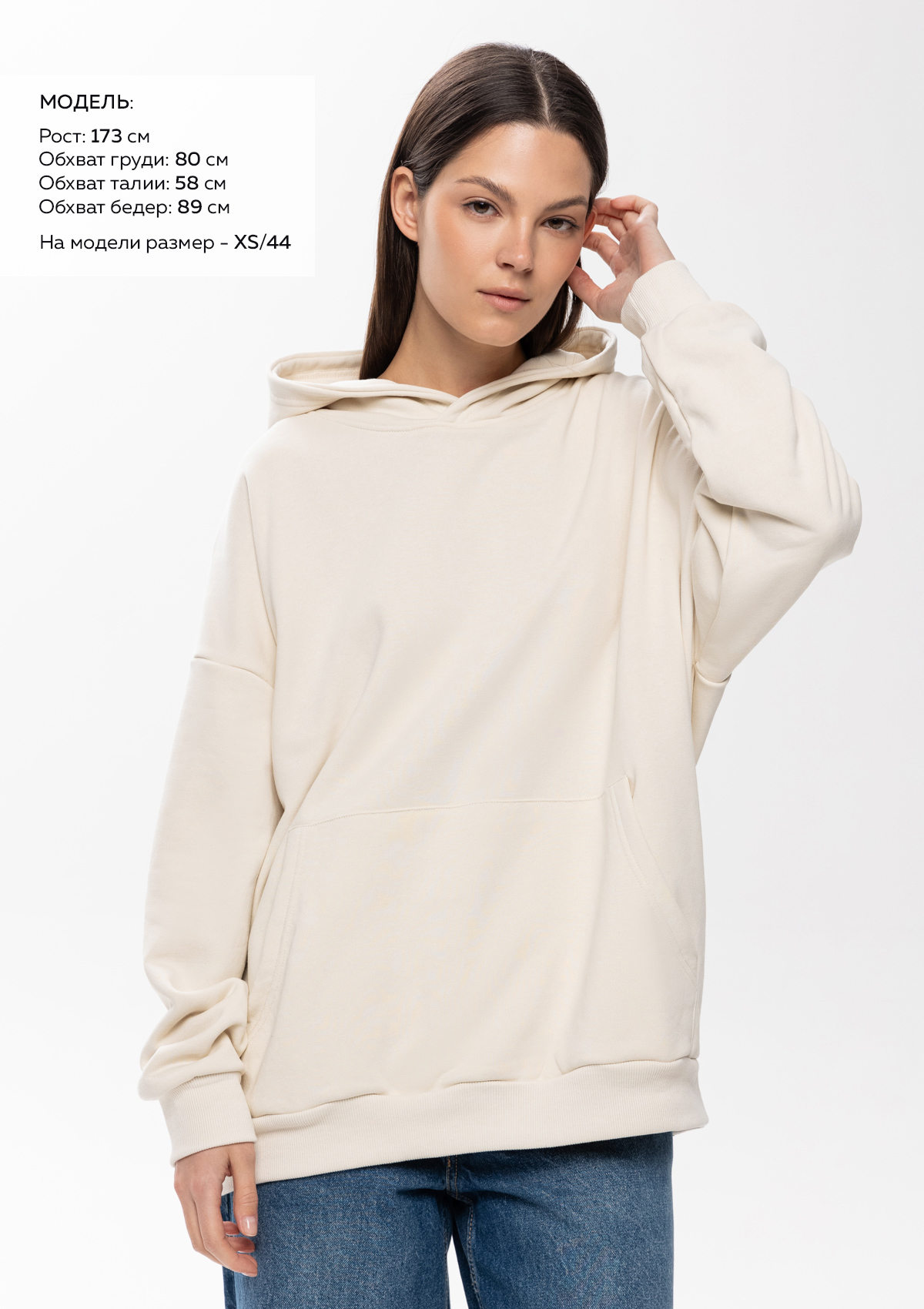 Уютная оверсайз толстовка идеальный способ выразить благодарность и проявить внимание к сотрудникам, участникам спортивной команды или членам союза студентов. Мягкий укутывающий силуэт, согревающие материалы и ваш яркий креатив гарантированно впечатлят своего получателя. <br /> <br /> Универсальная толстовка свободного силуэта с капюшоном комфортной глубины, спущенной линией плеча и глубоким карманом-кенгуру. Манжет и низ изделия оформлены широкой эластичной резинкой. <br /> <br /> Модель выполнена из мягкого и приятного к телу футера &#40;80&#37; хлопок и 20&#37; полиэстер&#41;. Плотный материал хорошо пропускает воздух и впитывает влагу. Благодаря добавлению синтетического волокна изделие обладает повышенной износостойкостью и эластичностью. <br /> <br /> Размер женского худи: XS/44. Параметры модели: рост 173 см.; обхват груди 80 см.; обхват талии 58 см.; обхват бедер 89 см.<br /> <br /> Размер мужского худи: XL/52. Параметры модели: рост 190 см.; обхват груди 108 см.; обхват талии 87 см.; обхватPбедерP104Pсм.